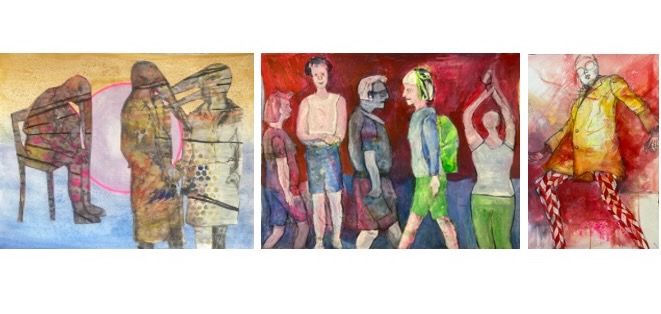 5-10 flache Plastikbecher zum Abfüllen der Pigmentfarben, Pappteller, Flach- und Rundpinsel in verschiedenen Größen, Schwamm, Lappen, Bleistift 3B/6B, Kohle, Spitzer, Radiergummi, Arbeitskleidung, alte bequeme Schuhe, Skizzenblock A3, Notizbuch, ggf. Leinwände und was man für die eigene Arbeit braucht, z.B. ein paar Lieblingsacrylfarben, Materialsammlung zum eigenen Thema, Staffeleien stehen zur Verfügung, Papier 70x100 cm im Kurs für 2,50 € erhältlich, auch Leinwände in diversen Größen im Kurs erhältlich (solange der Vorrat reicht)